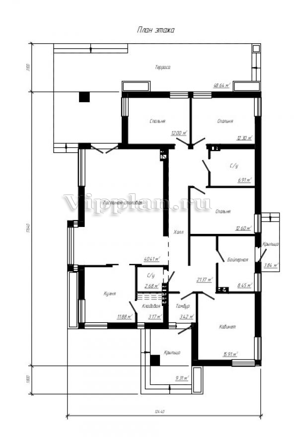 | Размеры дома: | 12.44м×17.64м |