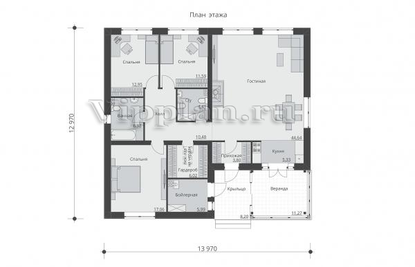 | Размеры дома: | 12.97м×13.97м |